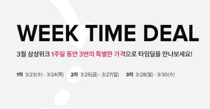 삼성 위크 타임 딜 삼성 위크 타임 딜 정보 포스팅 입니다. 삼성 다양한 제품을 할인 판매하네요. 할인 품목 : 냉장고, 청소기, 스피커 등 삼성 위크 타임 딜 정보 [링크] 핫딜/PC&가전 2022.03.24