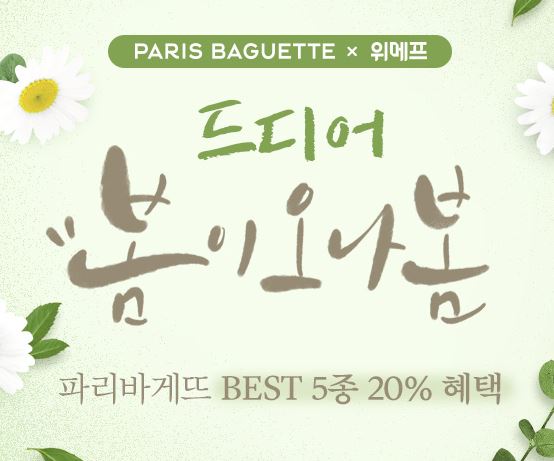 파리바게뜨 베스트 5종 20% 할인 파리바게뜨 베스트 5종 20% 할인 정보 포스팅입니다. 파리바게뜨 다양한 메뉴를 할인 판매하네요. 할인 메뉴 : 제주한라봉롤케익, 블루베리 요거트 케이크 등 파리바게뜨 베스트 5종 20% 할인 정보 [링크] 핫딜/식품&생활 2022.03.03