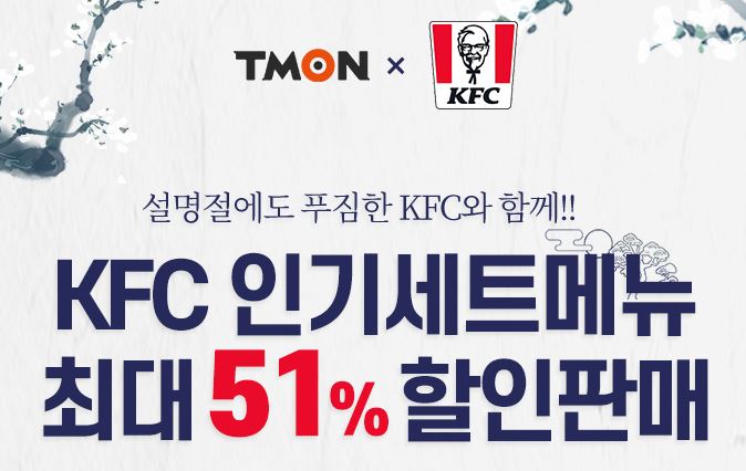 KFC 인기세트메뉴 최대 51% 할인 KFC 인기세트메뉴 최대 51% 할인 정보 포스팅입니다. KFC 다양한 메뉴를 할인 판매하네요. 할인 메뉴 : 순살치킨세트, 징거트위스터팩 등 KFC 인기세트메뉴 최대 51% 할인 정보 [링크] 핫딜/식품&생활 2022.02.01