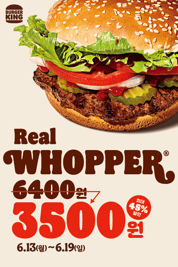 버거킹 와퍼 할인 이벤트 버거킹 와퍼 할인 이벤트 정보 포스팅입니다. 버거킹 와퍼를 할인 판매하네요. 정가 6400원 / 할인가 3500원 이벤트 기간 : 2022년 6월 13일 ~ 2022년 6월 19일 핫딜/식품&생활 2022.06.13