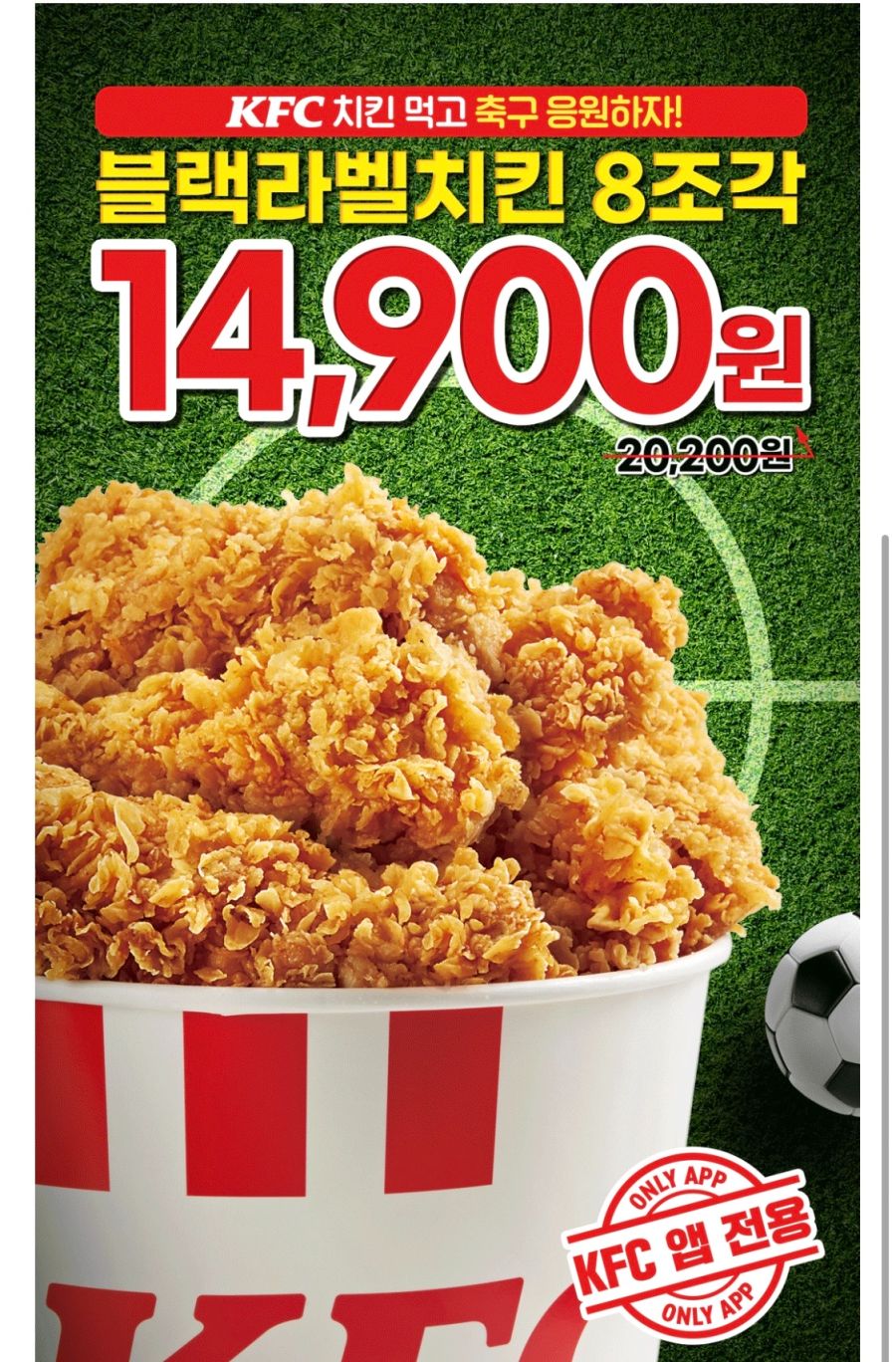 KFC 블랙라벨치킨 8조각 할인 이벤트 KFC 블랙라벨치킨 8조각 할인 이벤트 정보 포스팅입니다. KFC 블랙라벨치킨 8조각을 할인 판매하네요. 정가 20200원 / 할인가 14900원 이벤트 기간 : 2022년 6월 10일 KFC 앱에서 쿠폰 증정. 핫딜/식품&생활 2022.06.10