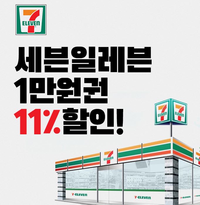 세븐일레븐 1만원권 11% 할인 세븐일레븐 1만원권 11% 할인 정보 포스팅입니다. 세븐일레븐 1만원권을 할인 판매하네요. 정가 1만원 / 할인가 8900원 세븐일레븐 1만원권 11% 할인 정보 [링크] 핫딜/식품&생활 2022.05.25