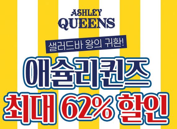 애슐리퀸즈 최대 62% 할인 애슐리퀸즈 최대 62% 할인 정보 포스팅입니다. 애슐리퀸즈 다양한 메뉴를 할인 판매하네요. 할인 품목 : 브라운버터 스테이크, 가족세트 등 애슐리퀸즈 최대 62% 할인 정보 [링크] 핫딜/식품&생활 2022.05.24