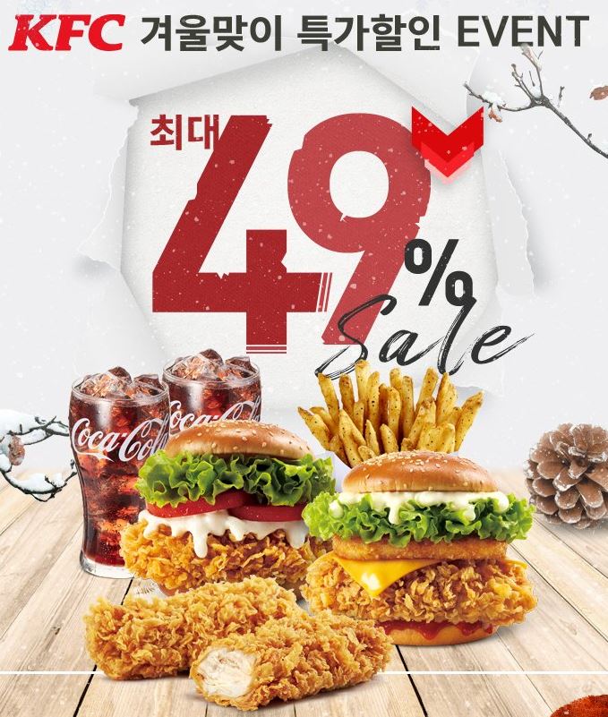 KFC 겨울맞이 최대 49% 할인 KFC 겨울맞이 최대 49% 할인 정보 포스팅입니다. KFC 다양한 메뉴를 할인 판매하네요. 할인 메뉴 : 타워치킨세트, 퍼펙트치킨세트 등 KFC 겨울맞이 최대 49% 할인 정보 [링크] 핫딜/식품&생활 2021.11.23