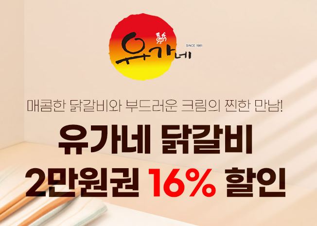 유가네 닭갈비 2만원권 16% 할인 유가네 닭갈비 2만원권 16% 할인 정보 포스팅입니다. 유가네 닭가비 2만원권을 할인 판매하네요. 정가 2만원 / 할인가 16900원 유가네 닭갈비 2만원권 16% 할인 정보 [링크] 핫딜/식품&생활 2021.07.23