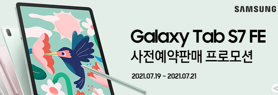 갤럭시 탭 S7 FE 사전예약판매 프로모션 갤럭시 탭 S7 FE 사전예약판매 프로모션 정보 포스팅입니다. 갤럭시 탭 S7 FE 사전예약판매 이벤트를 진행하네요. 20% 할인 쿠폰, 다양한 사은품 증정 이벤트 기간 : 2021년 7월 21일까지 갤럭시 탭 S7 FE 사전예약판매 프로모션 정보 [링크] 핫딜/PC&가전 2021.07.20