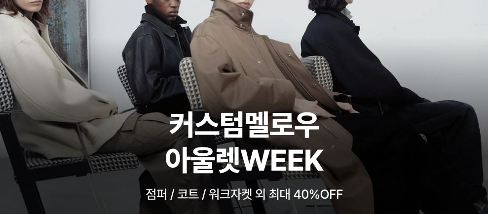 커스텀멜로우 아울렛 위크 커스텀멜로우 아울렛 위크 정보 포스팅입니다. 커스텀멜로우 다양한 제품을 할인 판매하네요. 할인 품목 : 점퍼, 자켓, 스웨터 등 커스텀멜로우 아울렛 위크 정보 [링크] 핫딜/패션&스포츠 2024.11.28