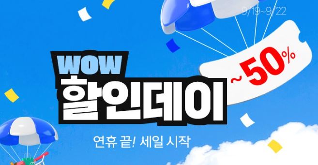 쿠팡 와우 할인데이 이벤트 쿠팡 와우 할인데이 이벤트 정보 포스팅입니다. 쿠팡 다양한 제품을 할인 판매하네요. 할인 품목 : 화장품, 생활용품, 가전 등 이벤트 기간 : 2024년 9월 22일까지 쿠팡 와우 할인데이 이벤트 정보 [링크] "이 포스팅은 제휴마케팅이 포함된 광고로 일정 커미션을 지급 받을 수 있습니다." 핫딜/식품&생활 2024.09.20