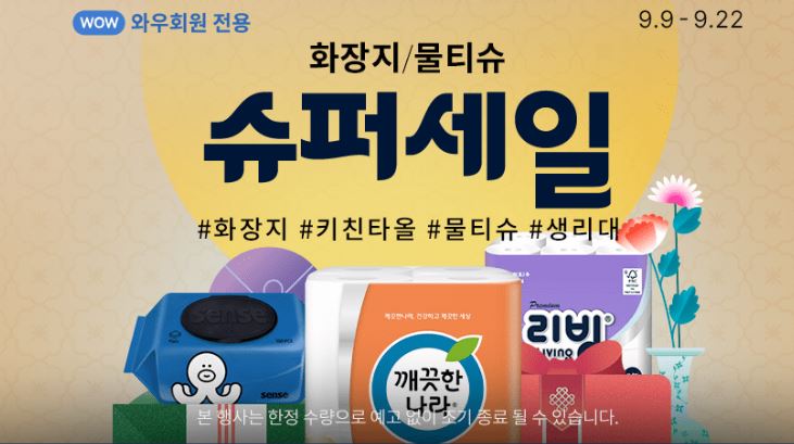 쿠팡 생활용품 슈퍼 세일 쿠팡 생활용품 슈퍼 세일 정보 포스팅입니다. 쿠팡 다양한 제품을 할인 판매하네요. 할인 품목 : 화장지, 물티슈 등 이벤트 기간 : 2024년 9월 22일까지 쿠팡 생활용품 슈퍼 세일 정보 [링크] "이 포스팅은 제휴마케팅이 포함된 광고로 일정 커미션을 지급 받을 수 있습니다." 핫딜/식품&생활 2024.09.17