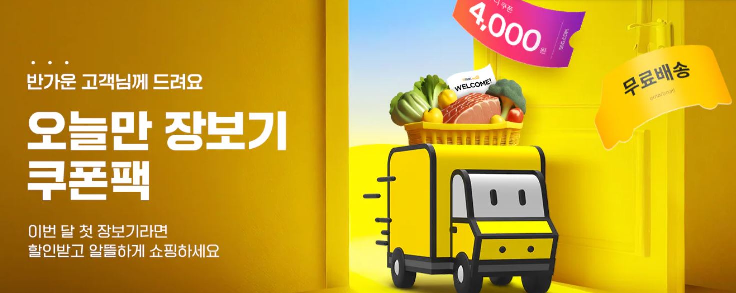 이마트몰 오늘만 장보기 쿠폰팩 이마트몰 오늘만 장보기 쿠폰팩 정보 포스팅입니다. 이마트몰 오늘만 장보기 쿠폰팩 이벤트를 진행하네요. 발급 대상 : 9월 중 구매이력 없는 회원 1만원 이상 구매시 4000원 장바구니 쿠폰 적용 가능 2만원 이상 구매시 아무때나 배송 옵션 선택시 무료배송 쿠폰 적용 가능 이벤트 기간 : 2024년 9월 24일 이마트몰 오늘만 장보기 쿠폰팩 정보 [링크] 핫딜/식품&생활 2024.09.24