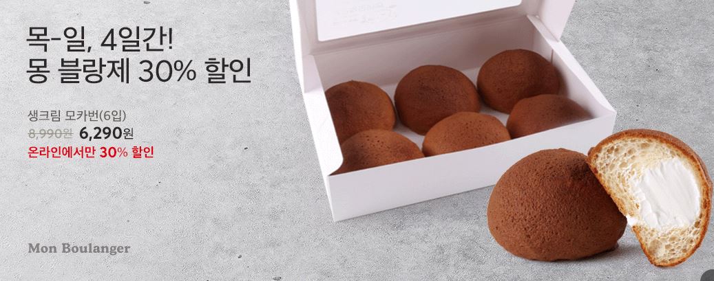 몽 블랑제 30% 할인 이벤트 몽 블랑제 30% 할인 이벤트 정보 포스팅입니다. 몽 블랑제 다양한 제품을 할인 판매하네요. 할인 품목 : 모카번, 단팥빵, 소보로빵 등 이벤트 기간 : 2023년 12월 3일까지 몽 블랑제 30% 할인 이벤트 정보 [링크] 핫딜/식품&생활 2023.12.01