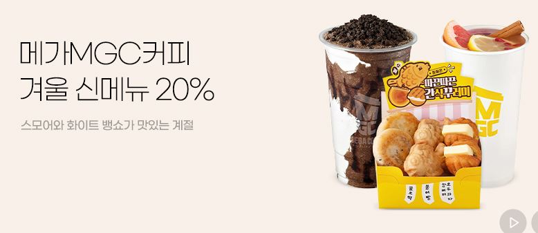 메가MGC커피 겨울 신메뉴 20% 할인 메가MGC커피 겨울 신메뉴 20% 할인 정보 포스팅입니다. 메가MGC커피 다양한 제품을 할인 판매하네요. 할인 품목 : 프라페, 에이드 등 메가MGC커피 겨울 신메뉴 20% 할인 정보 [링크] 핫딜/식품&생활 2023.12.19