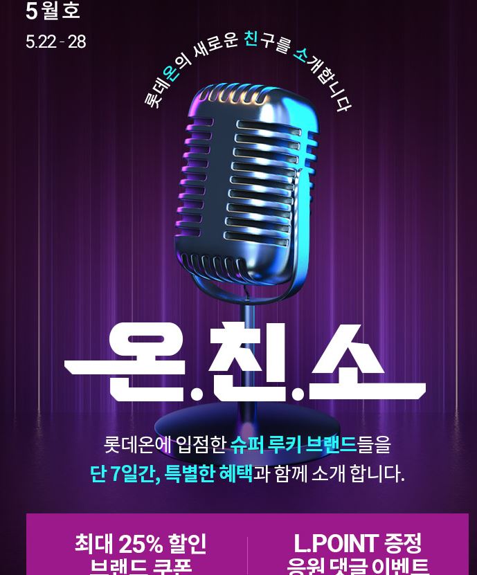 롯데온 온친소 이벤트 롯데온 온친소 이벤트 정보 포스팅입니다. 롯데온 다양한 제품을 할인 판매하네요. 할인 품목 : 티셔츠, 수영복, 식품 등 이벤트 기간 : 2023년 5월 28일까지 롯데온 온친소 이벤트 정보 [링크] 핫딜/패션&스포츠 2023.05.23