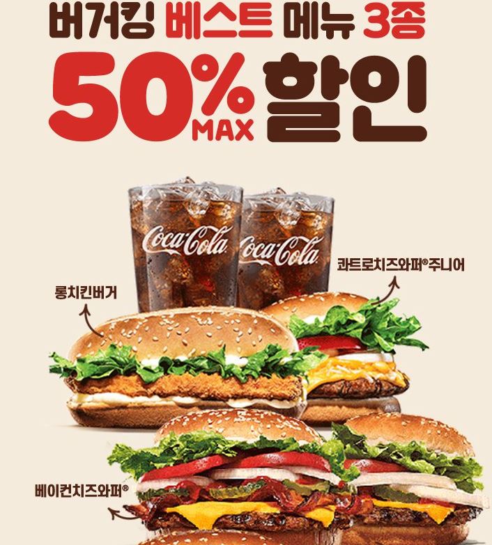 버거킹 베스트 메뉴 3종 최대 50% 할인 버거킹 베스트 메뉴 3종 최대 50% 할인 정보 포스팅입니다. 버거킹 다양한 메뉴를 할인 판매하네요. 할인 메뉴 : 베이컨치즈와퍼+치즈와퍼주니어+콜라2잔 등 버거킹 베스트 메뉴 3종 최대 50% 할인 정보 [링크] 핫딜/식품&생활 2022.03.15