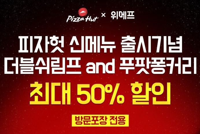 피자헛 방문포장 최대 50% 할인 피자헛 방문포장 최대 50% 할인 정보 포스팅입니다. 피자헛 다양한 메뉴를 할인 판매하네요. 할인 메뉴 : 마니아 페페로니 L + 허니갈릭옥수수 + 콜라 등 피자헛 방문포장 최대 50% 할인 정보 [링크] 핫딜/식품&생활 2022.02.20
