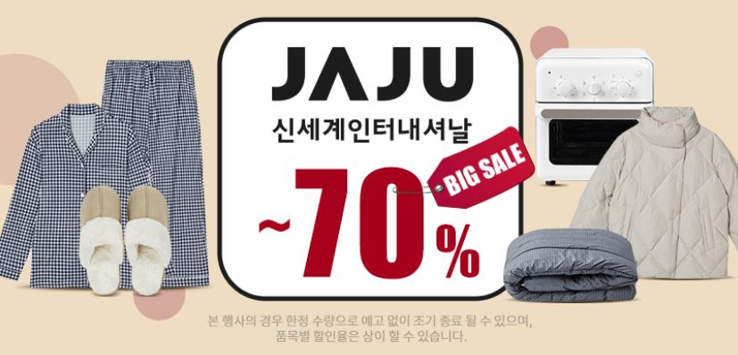 자주 최대 70% 세일 자주 최대 70% 세일 정보 포스팅입니다. 자주 다양한 제품을 할인 판매하네요. 할인 품목 : 파자마, 코트, 생활용품 등 자주 최대 70% 세일 정보 [링크] 핫딜/패션&스포츠 2021.11.22