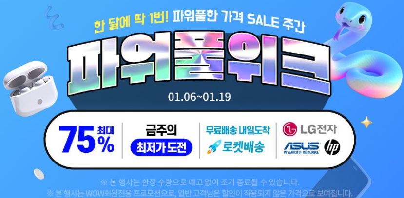 쿠팡 가전 파워풀위크 쿠팡 가전 파워풀위크 정보 포스팅입니다. 쿠팡 다양한 제품을 할인 판매하네요. 할인 품목 : 노트북, 모니터, 보조배터리 등 이벤트 기간 : 2025년 1월 19일까지 쿠팡 가전 파워풀위크 정보 [링크] 핫딜/PC&가전 2025.01.07