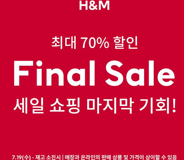 H&M 파이널 세일 H&M 파이널 세일 정보 포스팅입니다. H&M 다양한 제품을 할인 판매하네요. 할인 품목 : 원피스, 티셔츠 등 H&M 파이널 세일 정보 [링크] 핫딜/패션&스포츠 2023.07.21
