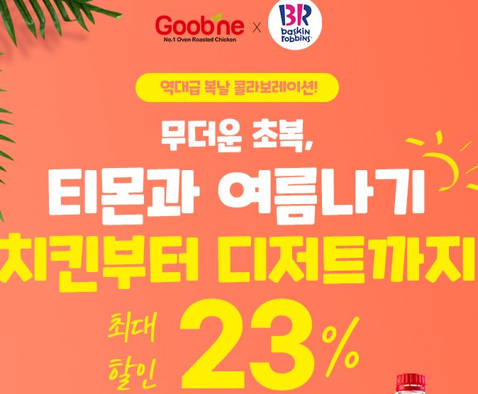 배스킨라빈스x굽네치킨 최대 23%할인 배스킨라빈스x굽네치킨 최대 23%할인 정보 포스팅입니다. 다양한 제품을 할인 판매하네요. 할인 품목 : 오븐바사삭+콜라&쿼터 등 배스킨라빈스x굽네치킨 최대 23%할인 정보 [링크] 핫딜/식품&생활 2022.07.12