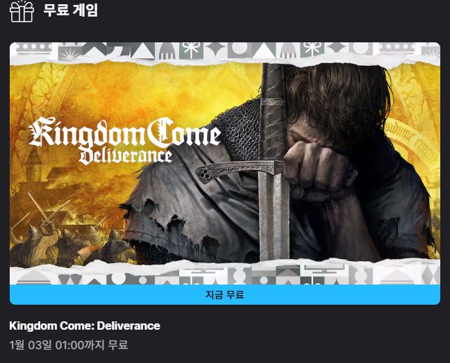 에픽게임즈 킹덤 컴 딜리버런스 무료 이벤트 에픽게임즈 킹덤 컴 딜리버런스 무료 이벤트 정보 포스팅입니다. 에픽게임즈 킹덤 컴 딜리버런스 무료 이벤트를 진행하네요. 이벤트 기간 : 2025년 1월 3일 오전 1시까지 에픽게임즈 킹덤 컴 딜리버런스 무료 이벤트 정보 [링크] 핫딜/PC&가전 2025.01.02