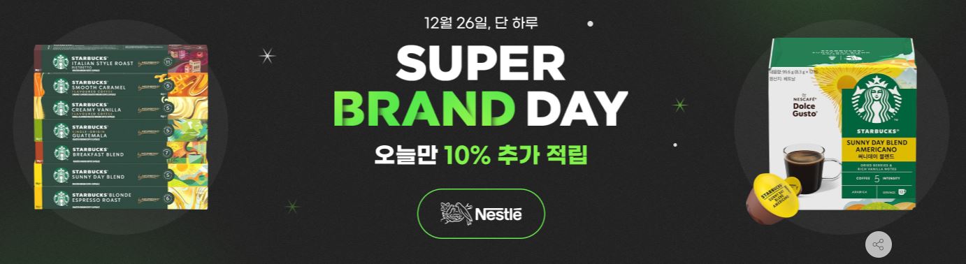 네슬레 슈퍼 브랜드 데이 네슬레 슈퍼 브랜드 데이 정보 포스팅입니다. 네슬레 다양한 제품을 할인 판매하네요. 할인 품목 : 캡슐커피, 원두커피, 초콜렛 등 이벤트 기간 : 2024년 12월 26일 네슬레 슈퍼 브랜드 데이 정보 [링크] 핫딜/식품&생활 2024.12.26