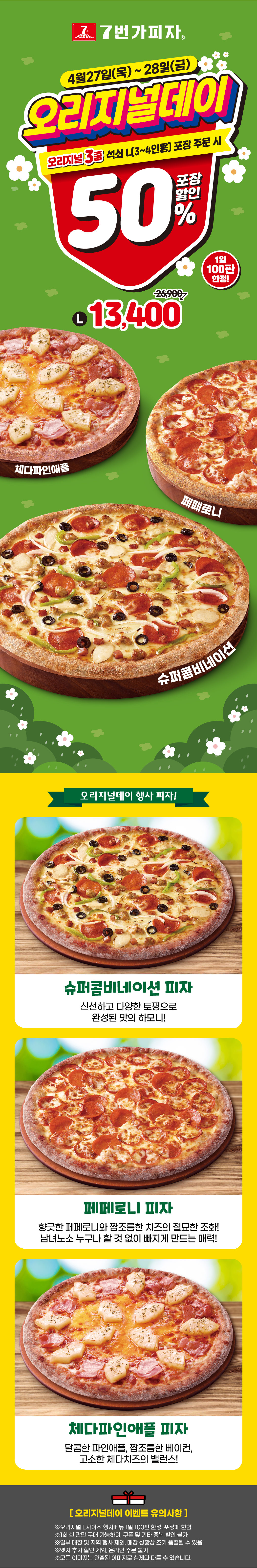 7번가피자 오리지널데이 50% 포장할인 정보 포스팅입니다.