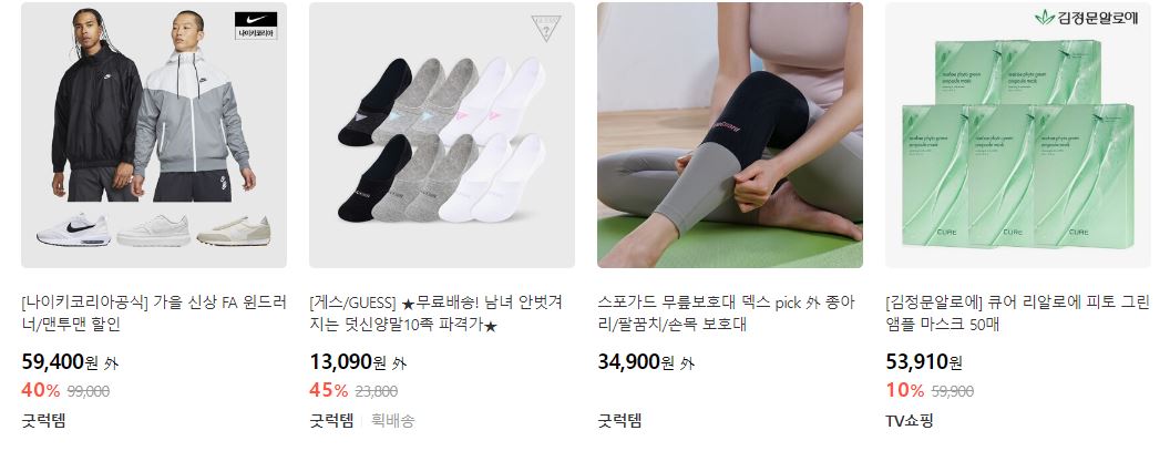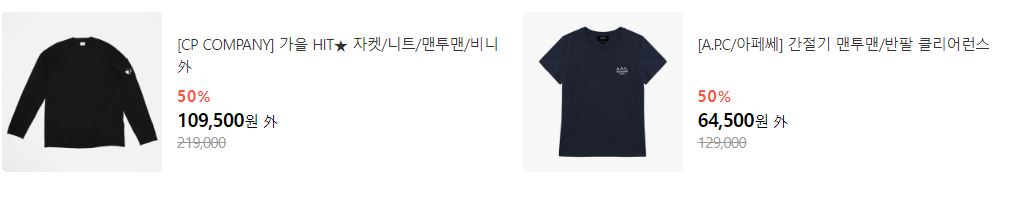 할인 품목 : 의류, 신발, 가방 등
