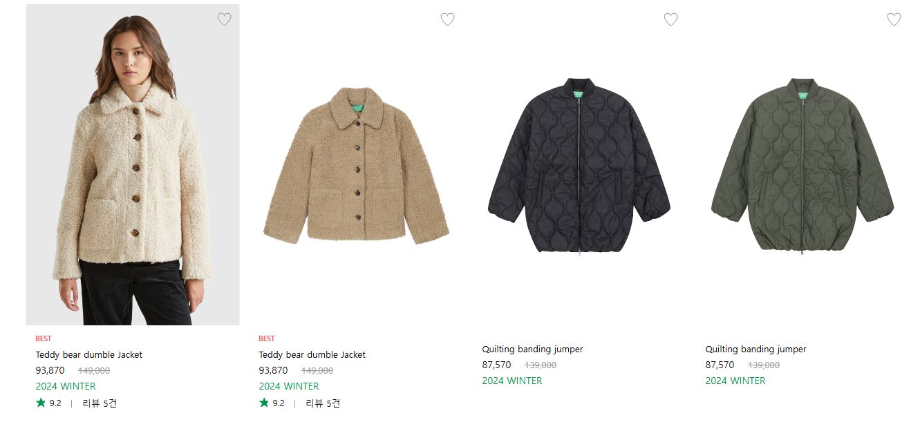 베네통 다양한 제품을 할인 판매하네요.